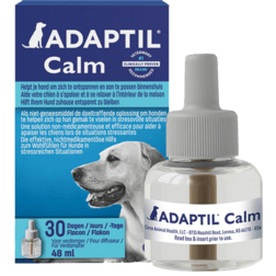 - Plug de ADAPTIL Calm Verdamper in het stopcontact in de ruimte waar de hond de meeste tijd doorbrengt. De moederferomonen in het product zullen in de ruimte worden verspreid en je hond helpen zich op zijn gemak te voelen