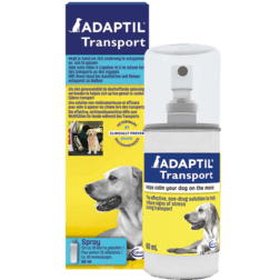 Tijdens dit proces, en 15 minuten voor vertrek, spray je 8 spraytjes ADAPTIL Transport in de auto of reismand. Het is klinisch bewezen dat het gebruik van ADAPTIL het hijgen en rusteloosheid tijdens het reizen vermindert.