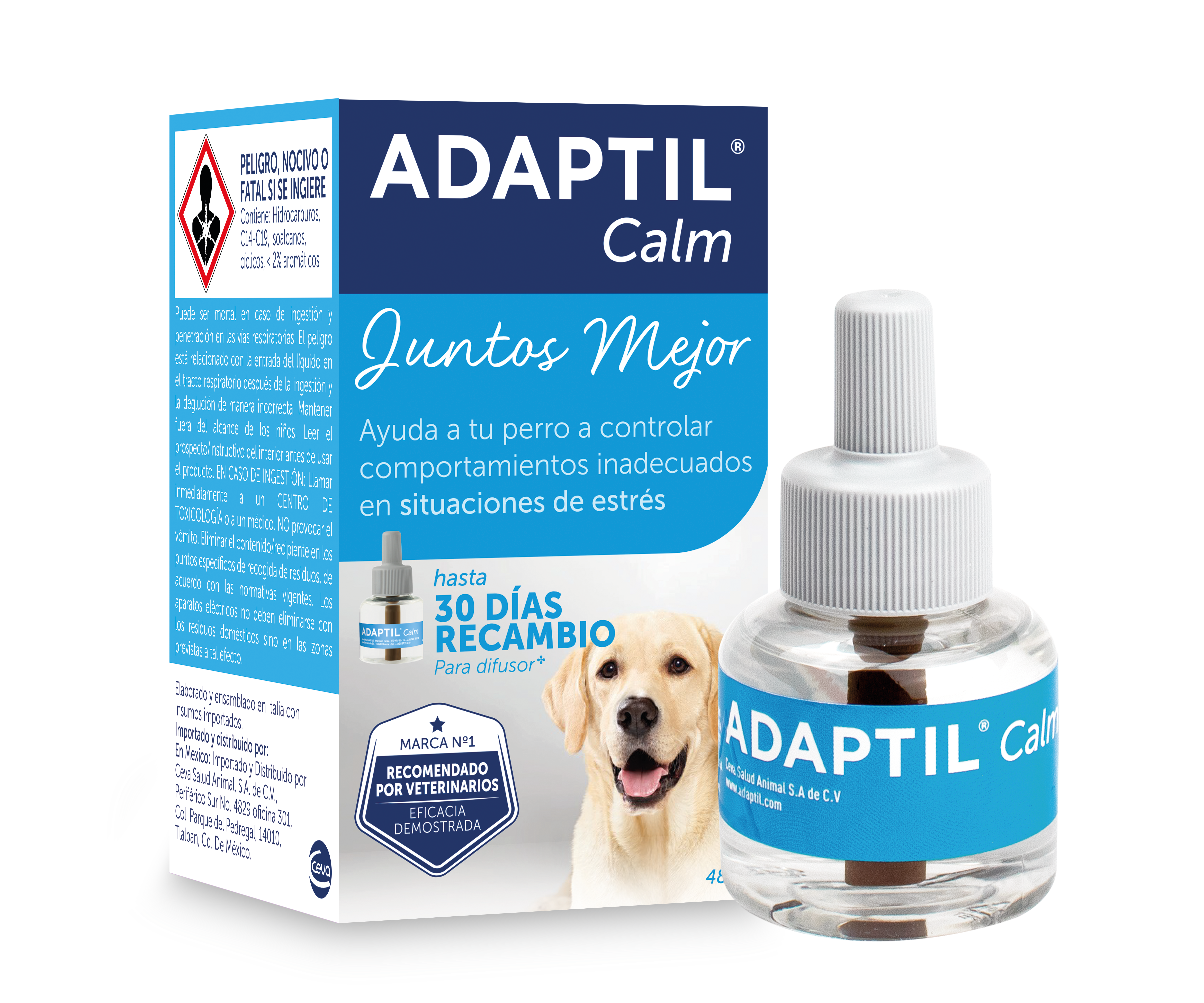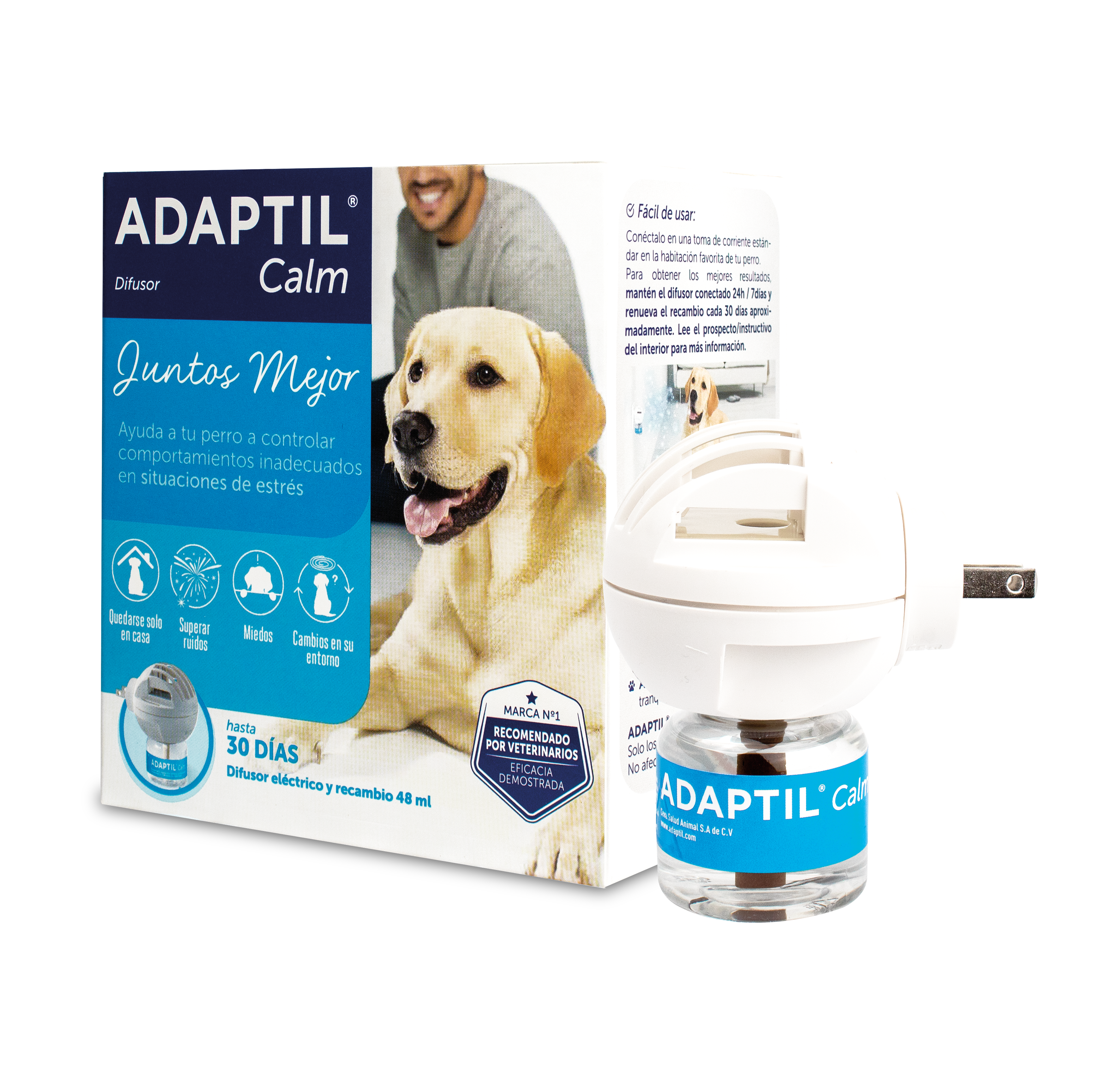 - No utilizar ADAPTIL en casos de agresividad hacia las personas u otros perros. En estas situaciones, recomendamos consultar a un veterinario especialista en el comportamiento.