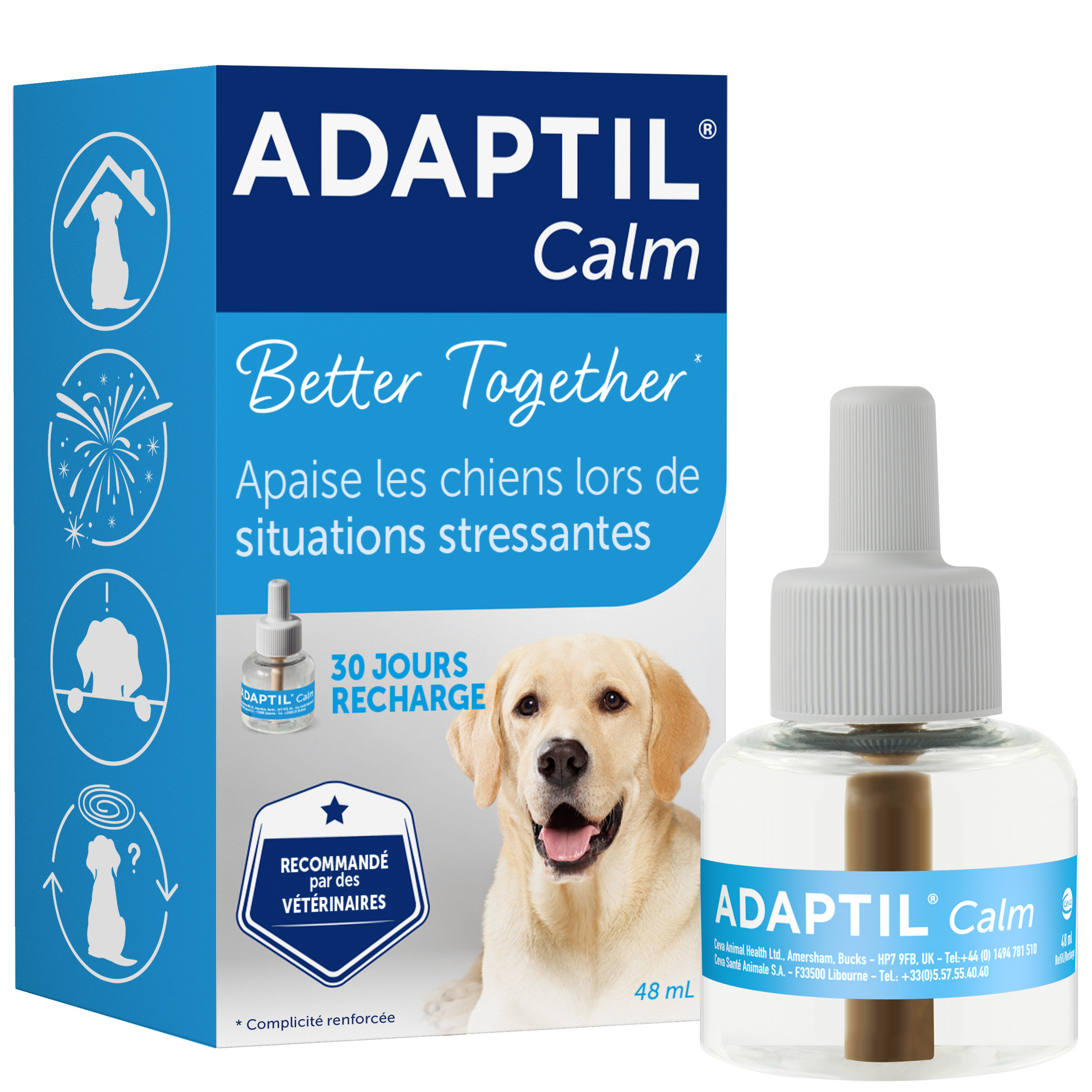 Bu "rahatlatıcı mesajlar", her yaştan köpek için güçlü bir güvenlik ve rahatlık sinyali sağlar. ADAPTIL Calm, köpeklerin tüm zorlu durumlarda kendilerini güvende ve rahat hissetmelerine yardımcı olmak için “rahatlatıcı mesajlar” yayar.